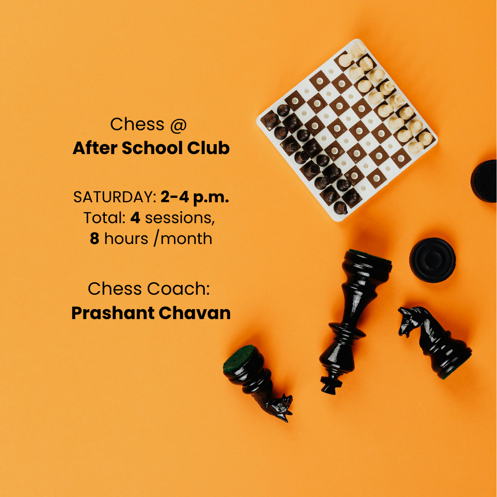 Chess coaching timings are Saturday 2 pm to 4 pm at After School Club by Prashant Sir.